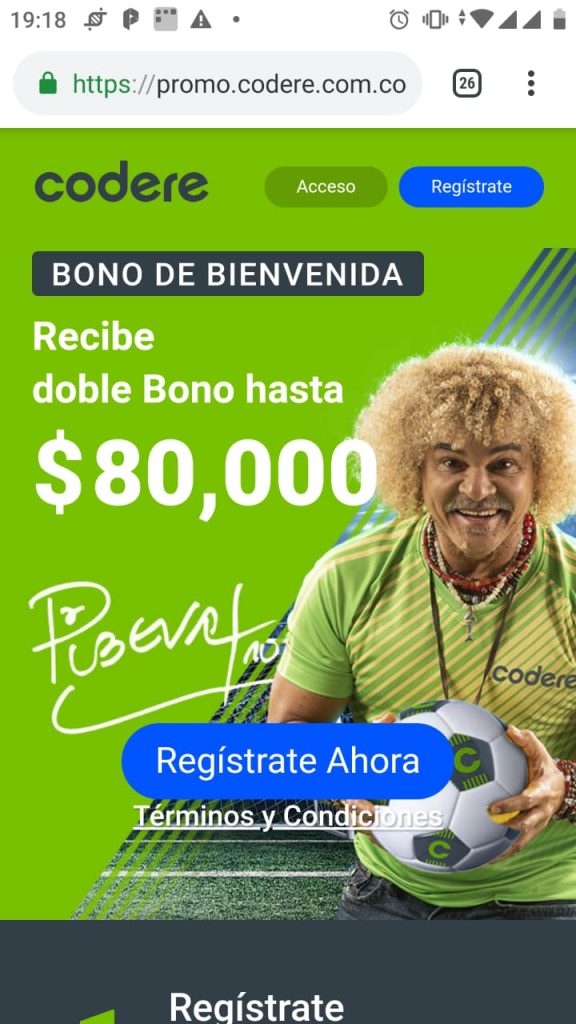 1. )Entra a la página oficial de codere dando click acá, luego de eso te aparecerá una imagen del Pibe Valderrama para que le des click en Registrarse, será así:
